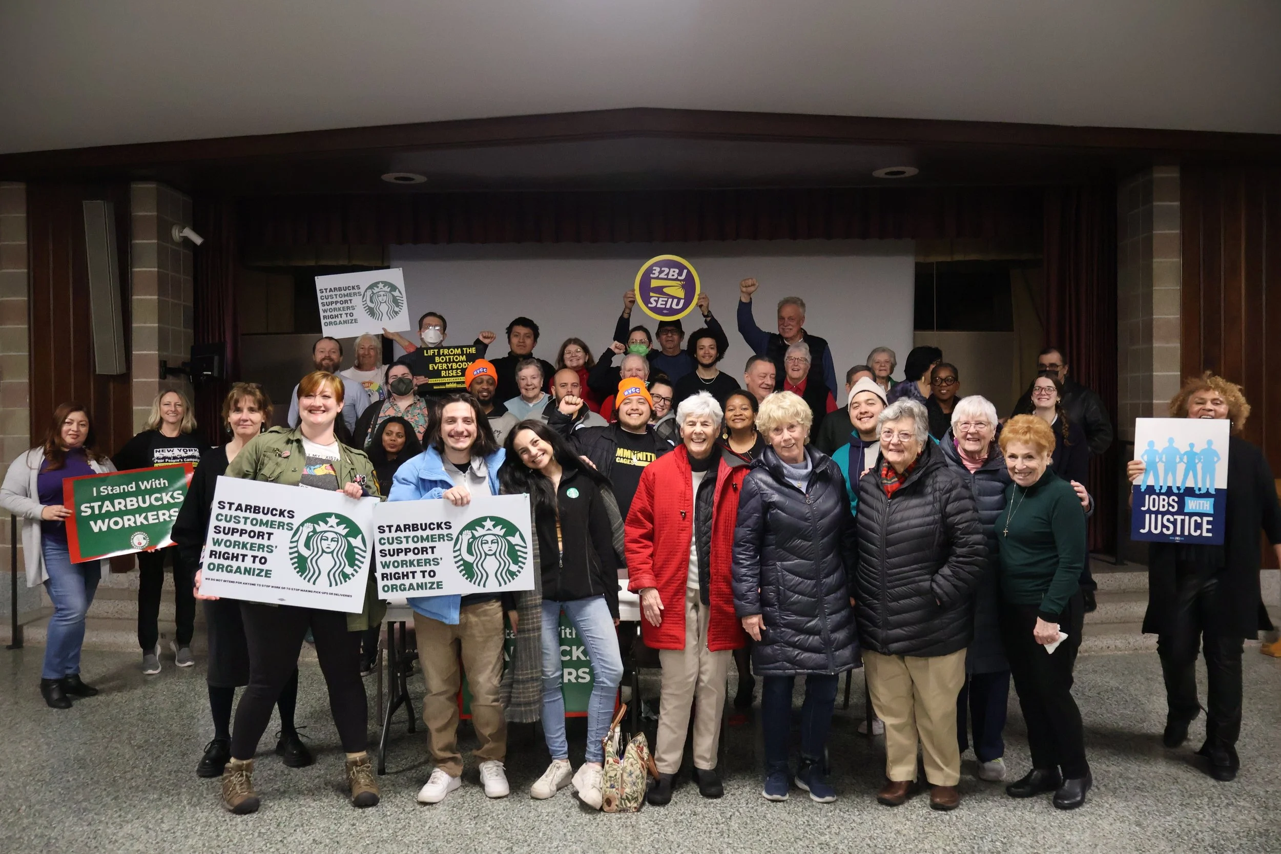 2024 was all about harnessing our community power. In February, we pulled off a Workers’ Rights Board hearing with local legislators, academics, and faith leaders—everyone came together to hear from four Starbucks workers directly. That event was a turning point. Out of it came a set of recommendations and a detailed report, which we shared with the media and hand-delivered to store managers that May. Faith leaders rallied too, getting over 100 of their peers to sign a letter to Starbucks management, then marching it right into stores and putting it in managers’ hands.